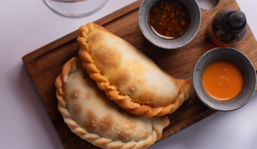 Entrada: empanada de carne o humita, con chimichurri casero y criolla emulsionada.