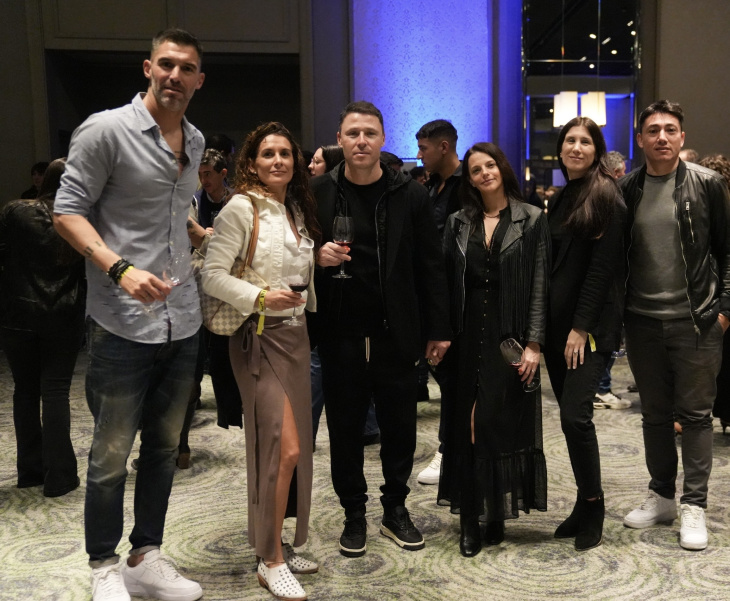 Los ex futbolistas Mariano Andújar, Israel Damonte y Pablo Lugüercio junto a sus esposas